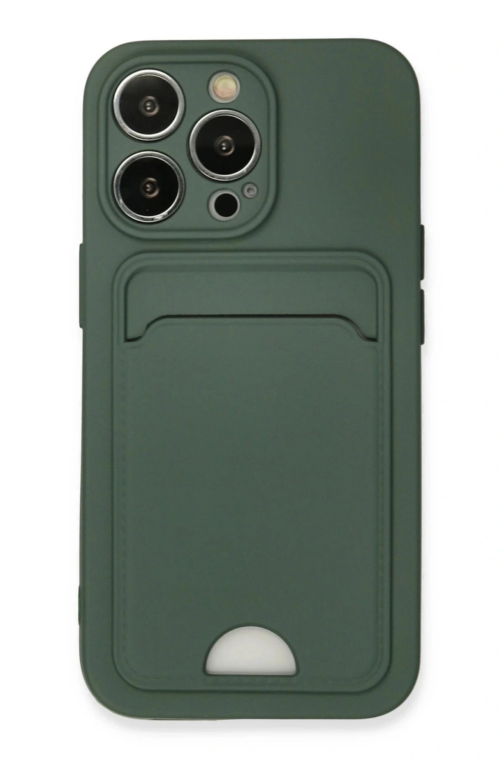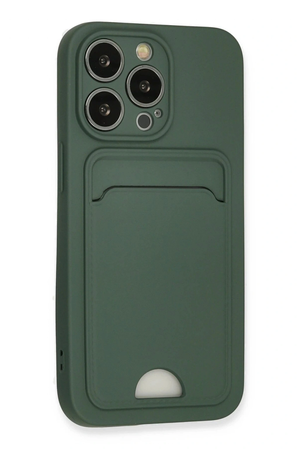 • iPhone 13 Pro Kılıf Kelvin Kartvizitli Silikon - Koyu Yeşil