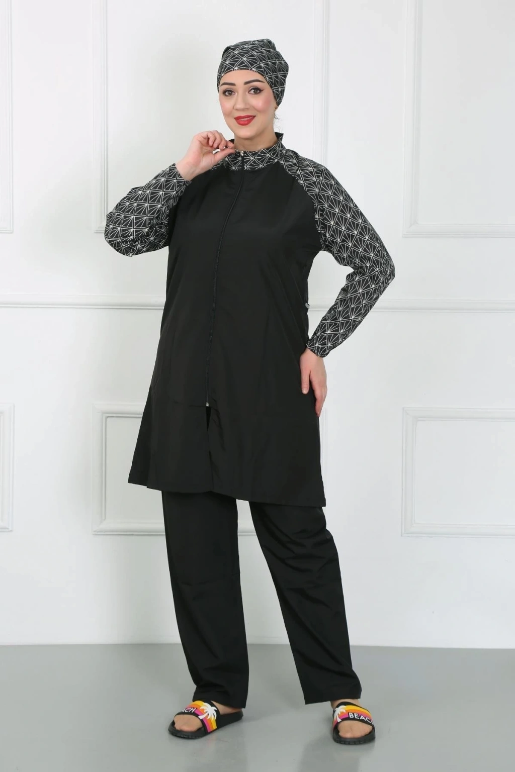Moda Büyük Beden Desenli Tesettür Mayo Siyah