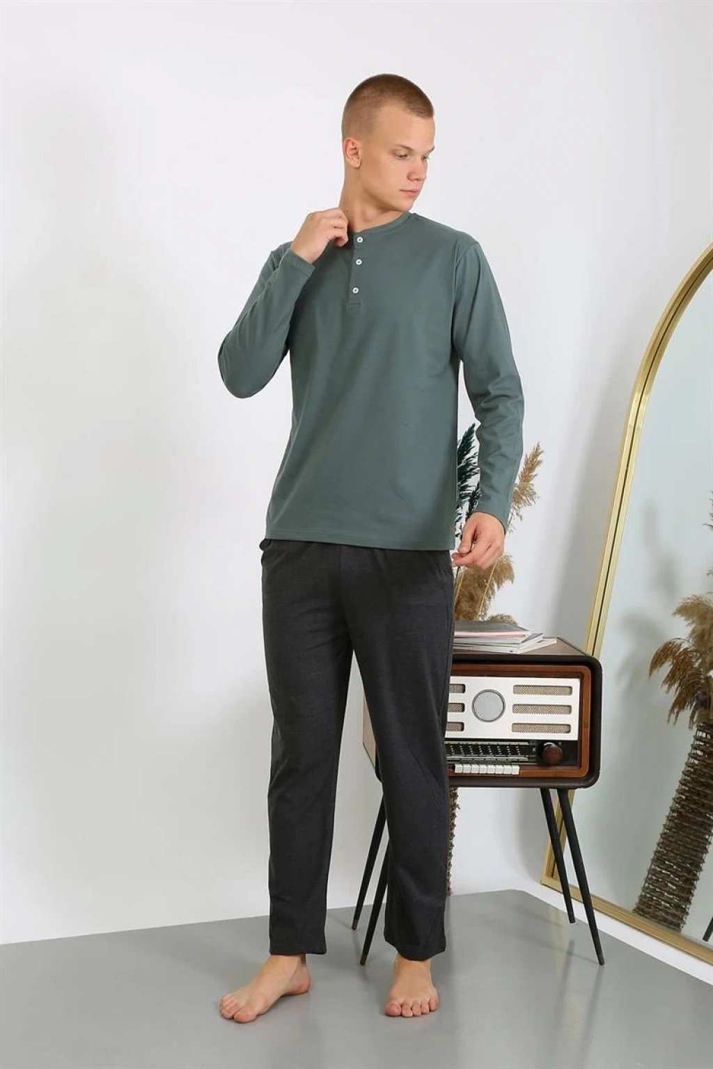 Erkek Penye Uzun Kol Pijama Takımı Haki ile şıklığı ve konforu bir arada yaşamak için hemen sepetinize ekleyin!