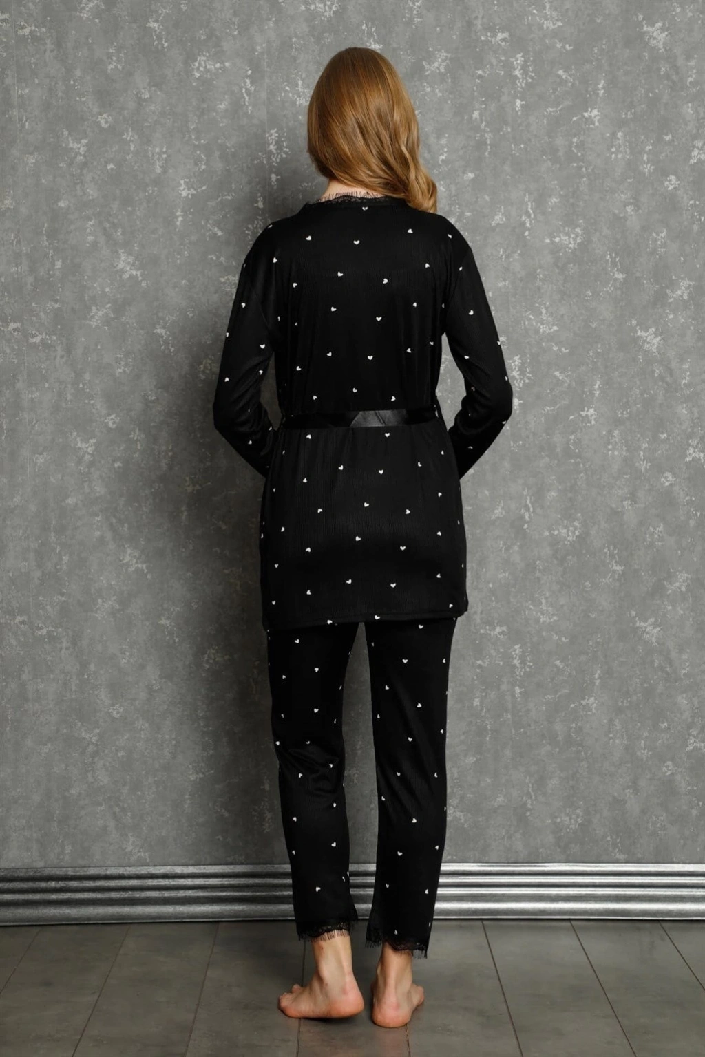 Çamaşır Kenti markasının şıklık ve rahatlığı bir araya getiren Kadın 3'lü Sabahlık Pijama Takımı Siyah, gecelerinize zarif bir dokunuş katıyor.