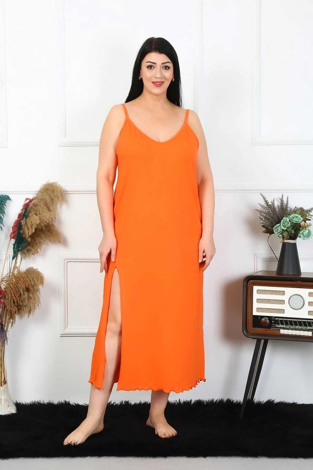 Çamaşır Kenti Kadın Büyük Beden İp Askılı Pamuklu Turuncu Uzun Gecelik, rahatlığı ve şıklığı bir arada sunar.