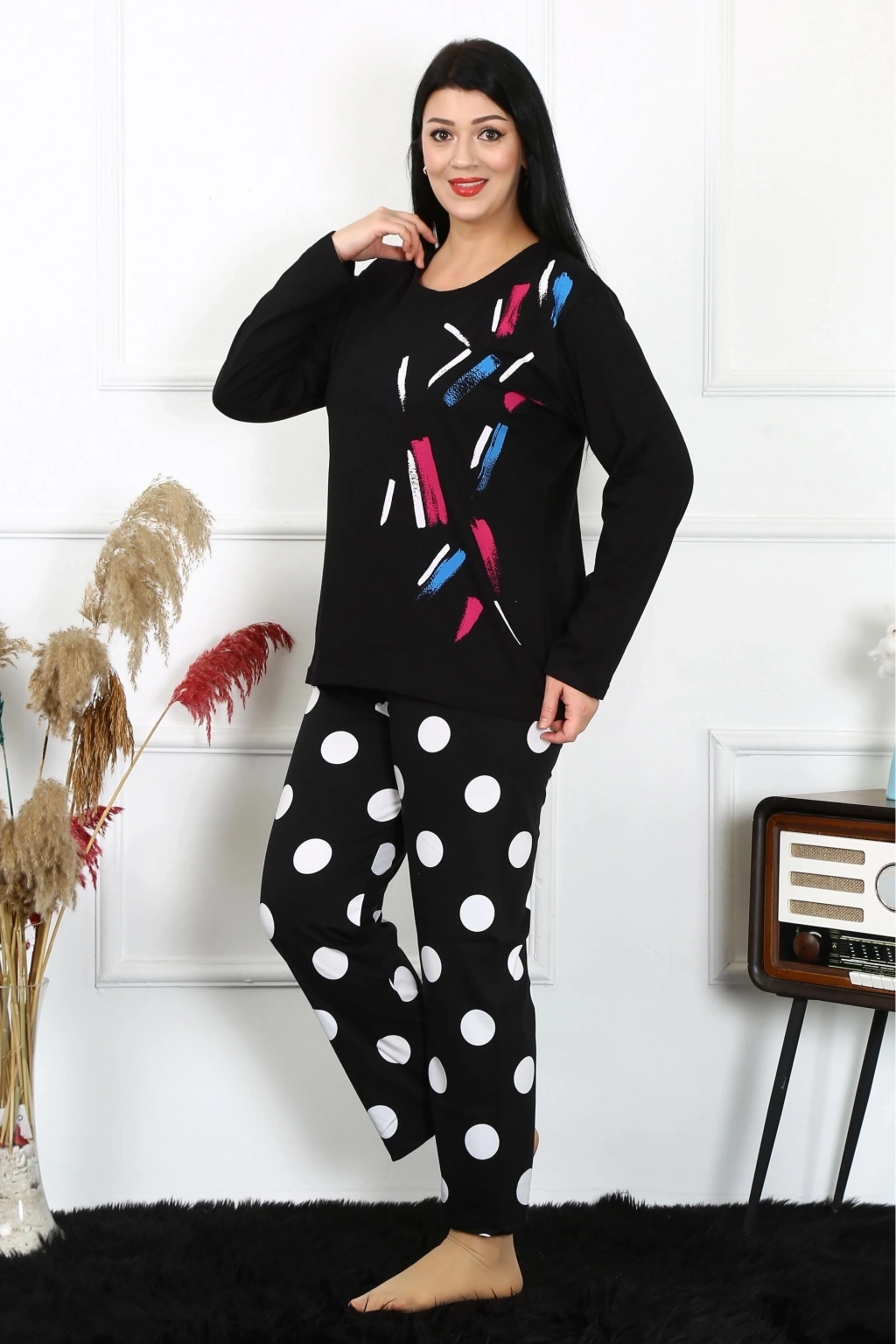 Çamaşır Kenti marka Kadın Büyük Beden Penye Uzun Kol Pijama Takımı, rahatlığı ve şıklığı bir arada sunar.