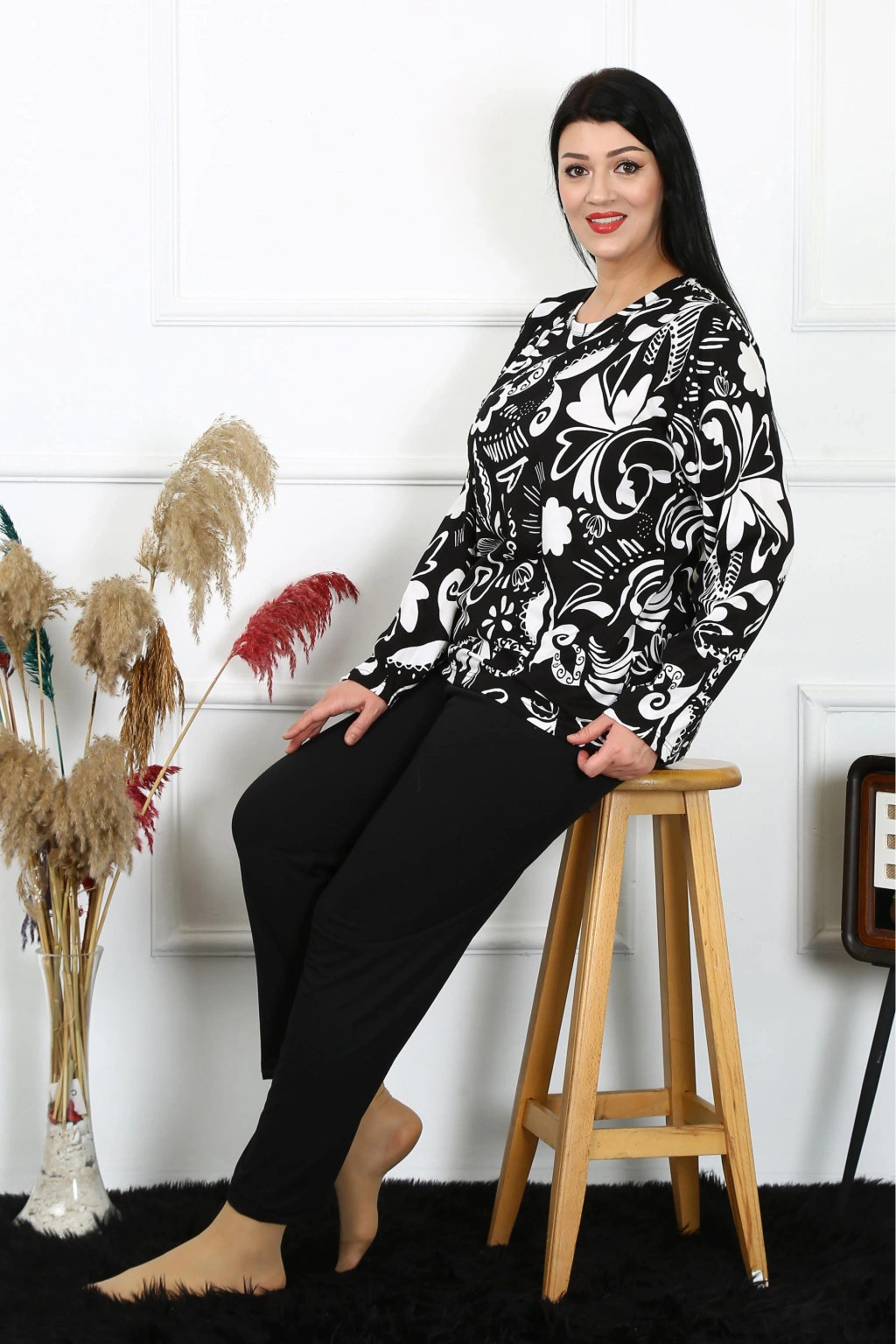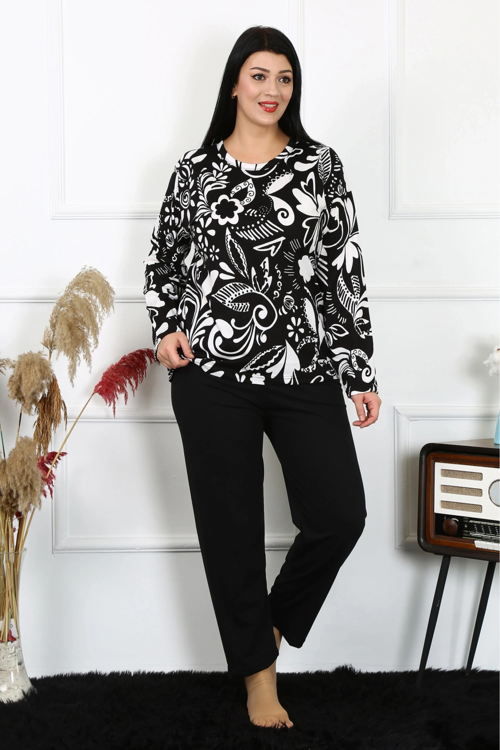 Çamaşır Kenti markasının kadınlar için özel tasarlanmış Big Size penye pijama takımı, konforu ve şıklığı bir arada sunar.