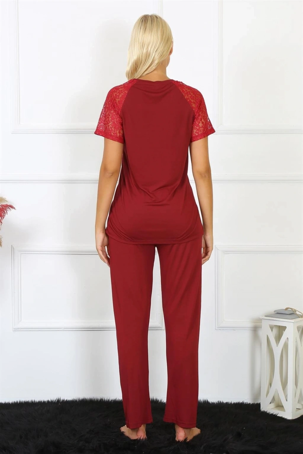 Kadın Kolu Dantelli Penye Pijama Takımı Bordo, hem şık görünmek hem de rahat etmek isteyen kadınların tercihi olacak. Siz de bu özel pijama takımı ile gece şıklığınızı tamamlayabilirsiniz!