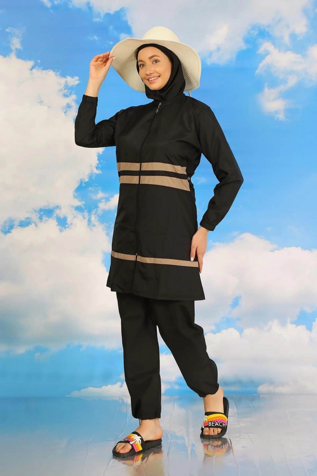Çamaşır Kenti markasının kadınlar için özel olarak tasarladığı Tam Tesettür Mayo Siyah, plajda şıklığı ve rahatlığı bir arada arayanlar için ideal bir seçenektir.