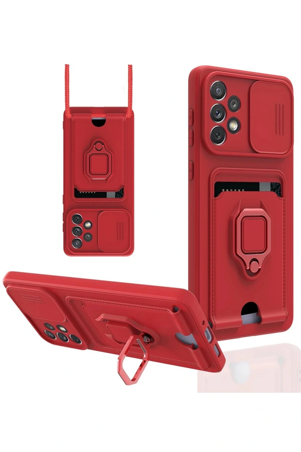 • Samsung Galaxy A23 4G Kılıf Zuma Kartvizitli Yüzüklü Silikon - Kırmızı