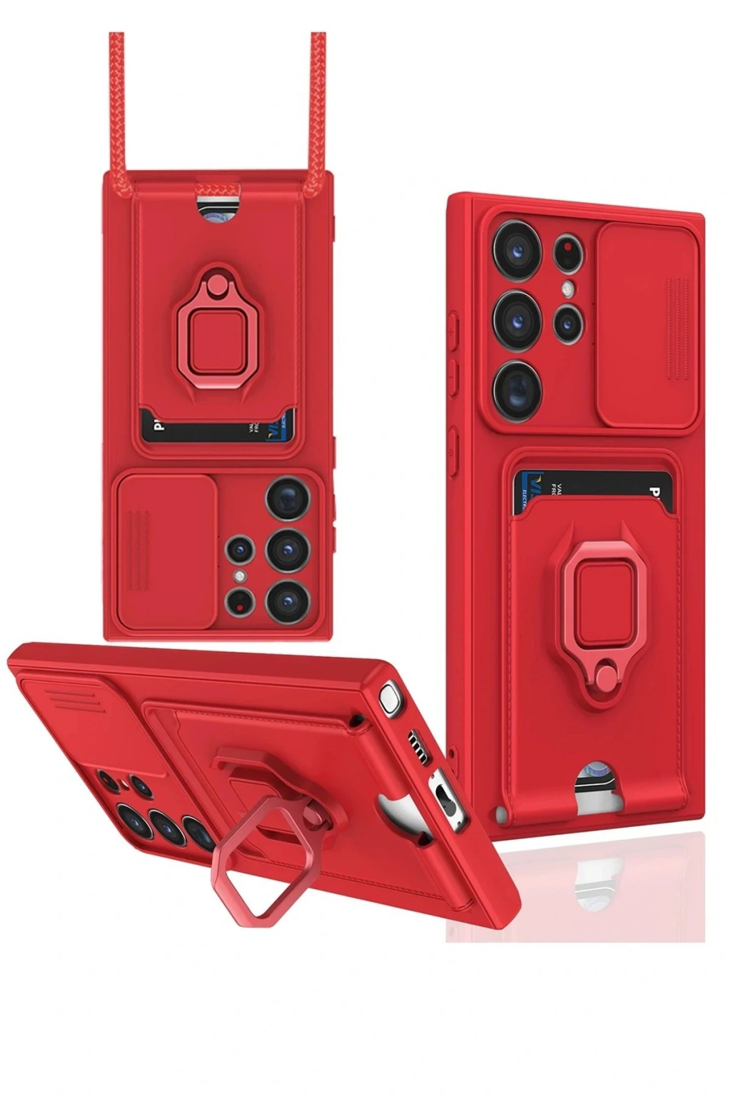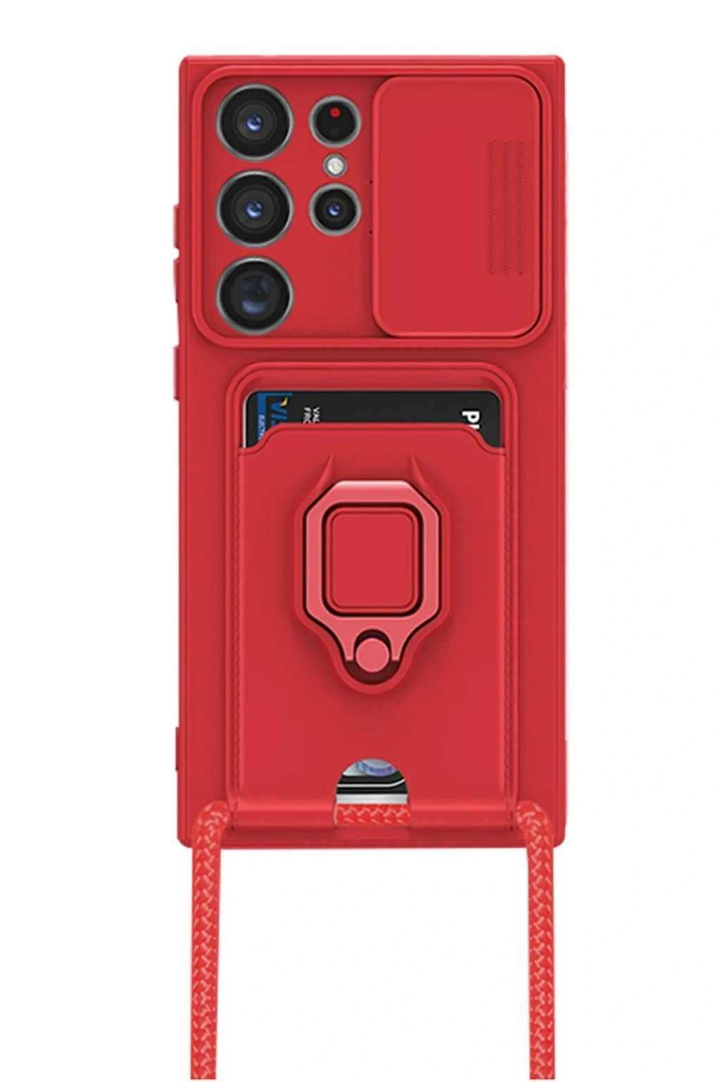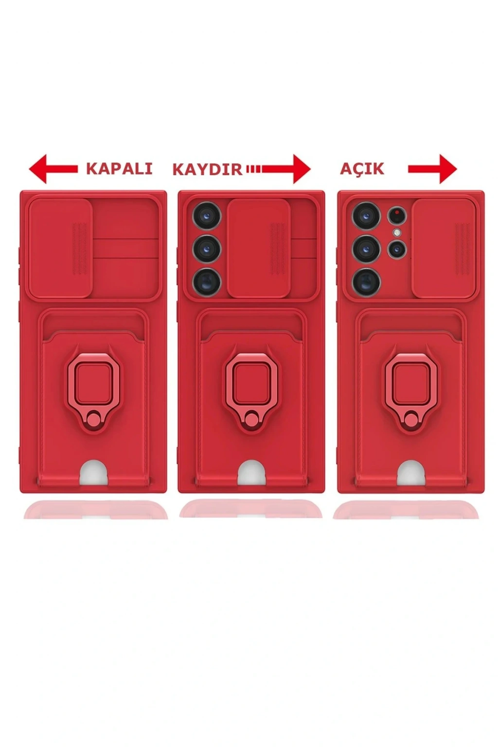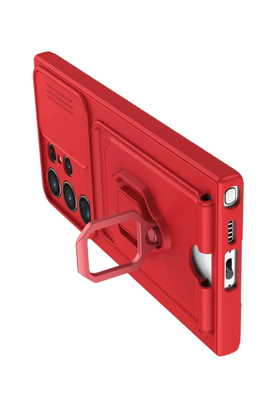 • Samsung Galaxy S23 Ultra Kılıf Zuma Kartvizitli Yüzüklü Silikon - Kırmızı