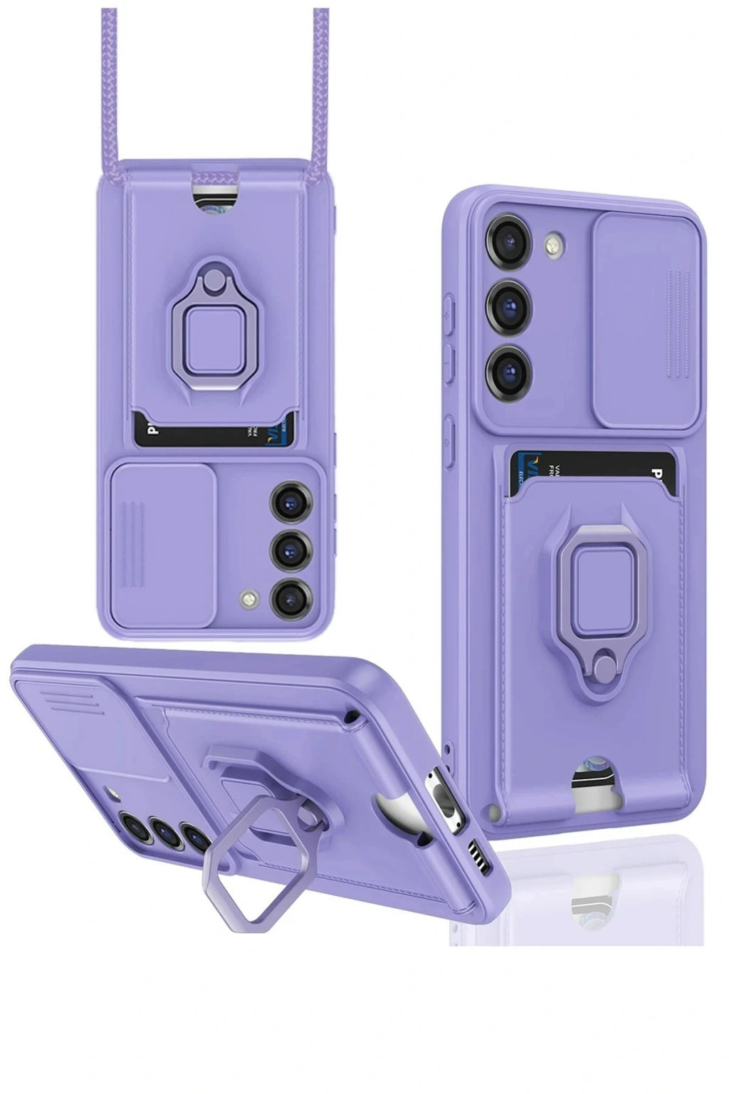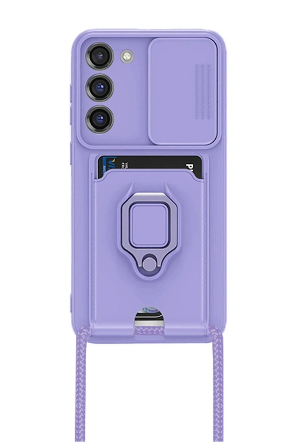 • Samsung Galaxy S24 Plus Kılıf Zuma Kartvizitli Yüzüklü Silikon - Lila