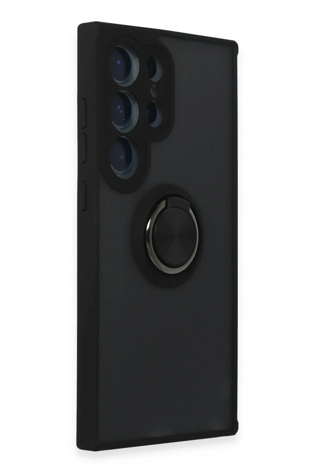 • Samsung Galaxy S24 Ultra Kılıf Montreal Yüzüklü Silikon Kapak - Siyah