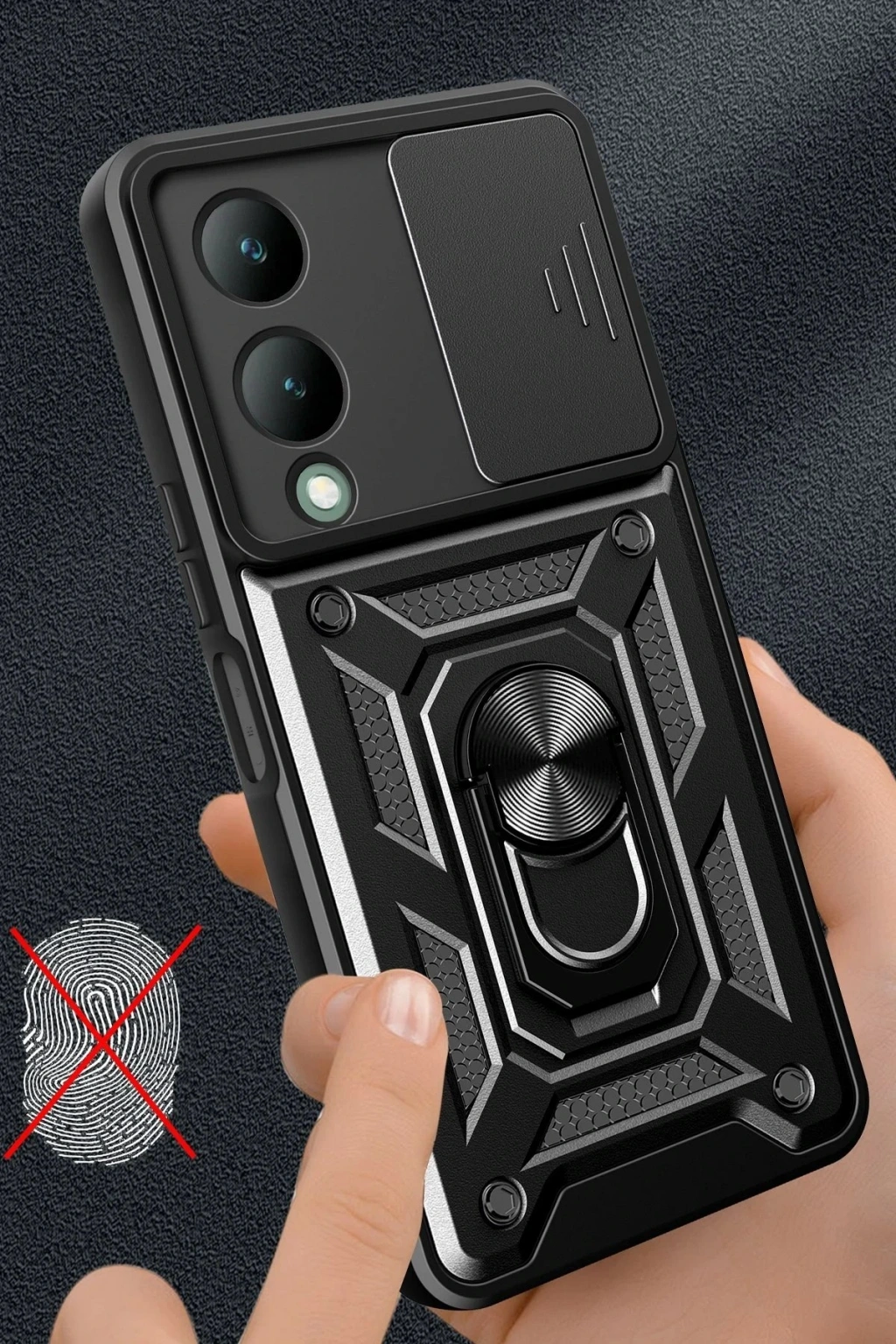 • Vivo Y17S Kılıf Pars Lens Yüzüklü Silikon - Siyah
