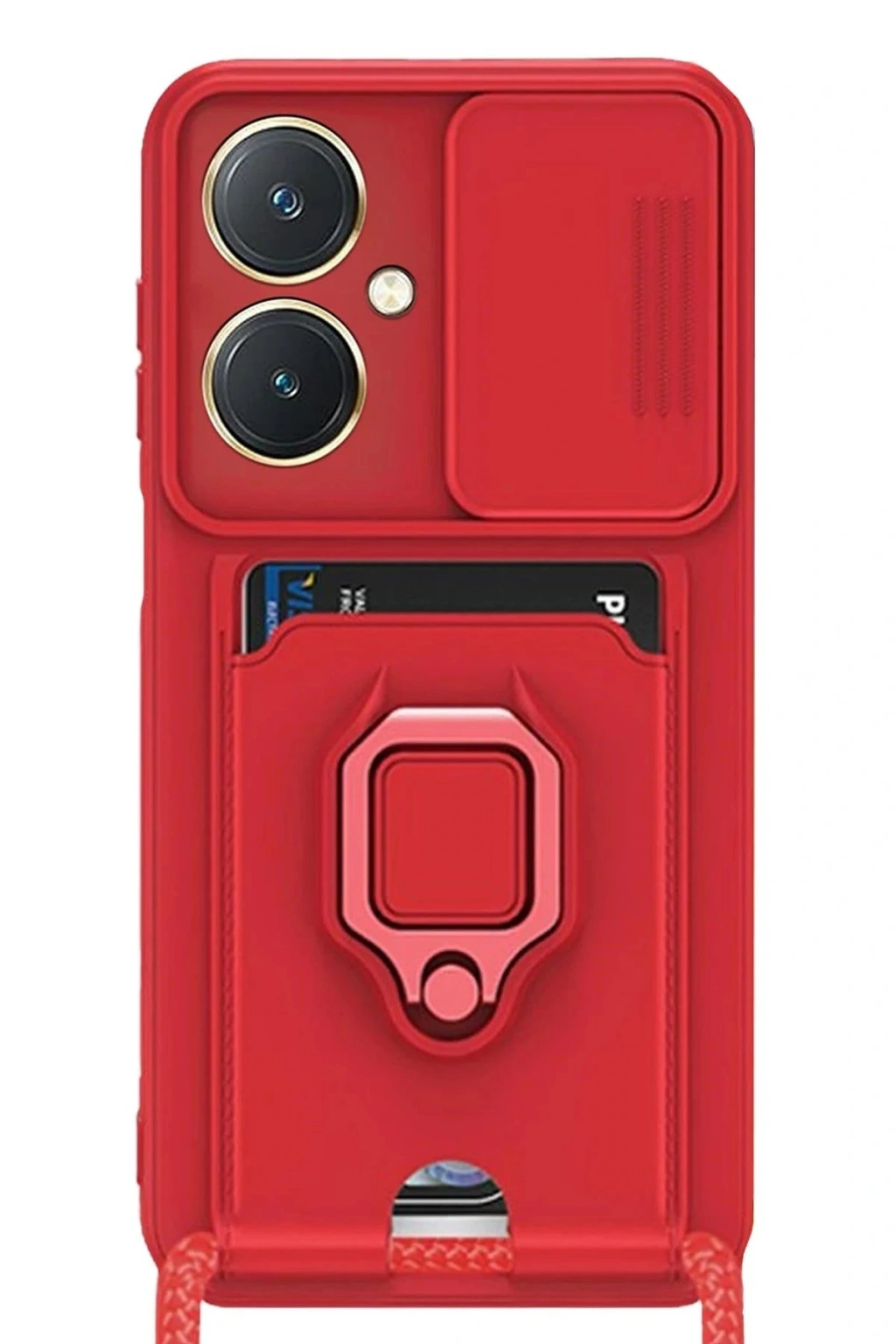 Vivo Y27 Kılıf Zuma Kartvizitli Yüzüklü Silikon - Kırmızı