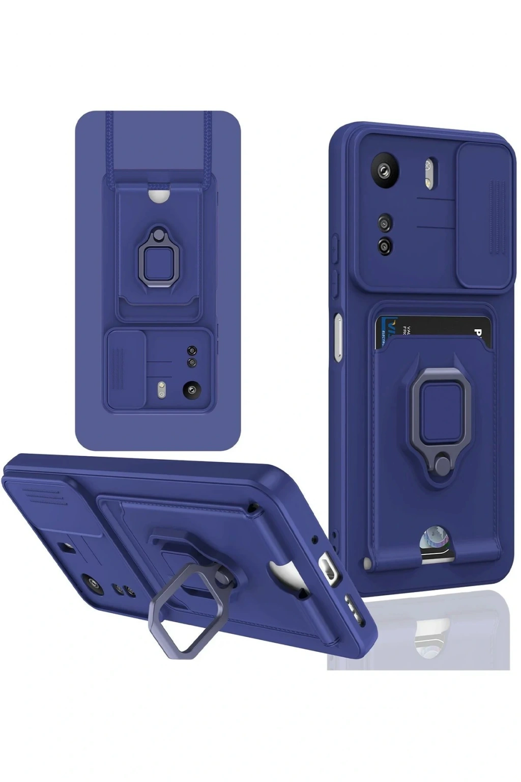 Xiaomi Redmi 13C Kılıf Zuma Kartvizitli Yüzüklü Silikon - Lacivert